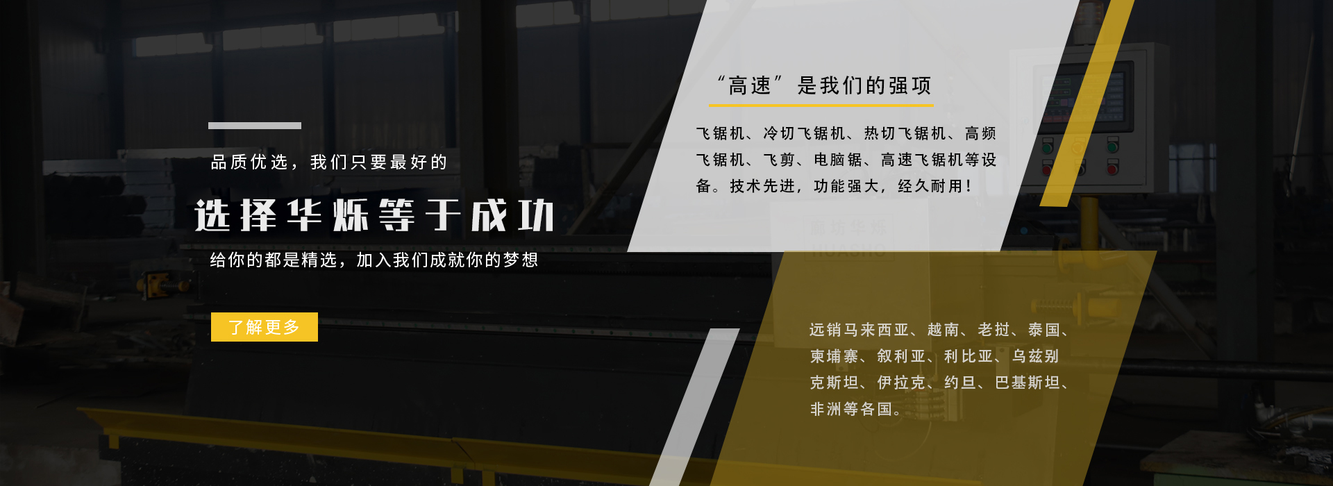 廊坊華爍自動(dòng)化設(shè)備有限公司以誠(chéng)信交朋友、服務(wù)求生存、技術(shù)求發(fā)展為宗旨,多年來(lái)專(zhuān)注研制、生產(chǎn)、銷(xiāo)售高頻焊管生產(chǎn)線(xiàn)輔機(jī)——數(shù)控高頻冷切飛鋸機(jī)為主線(xiàn),為國(guó)內(nèi)外客戶(hù)提供高品質(zhì)的需求產(chǎn)品。如:飛鋸機(jī)、冷切飛鋸機(jī)、熱切飛鋸機(jī)、高頻飛鋸機(jī)、飛剪、電腦鋸、高速飛鋸機(jī)等設(shè)備。 廊坊華爍超過(guò)多年的技術(shù)經(jīng)驗(yàn)和研發(fā)能量累積,有強(qiáng)大的系統(tǒng)集成能力,專(zhuān)門(mén)為用戶(hù)提供量身定制的控制方案,并承攬依用戶(hù)需求來(lái)開(kāi)發(fā)設(shè)計(jì)符合機(jī)械要求的新型生產(chǎn)系統(tǒng)。 華爍生產(chǎn)的產(chǎn)品暢銷(xiāo)國(guó)內(nèi)各省,遠(yuǎn)銷(xiāo)馬來(lái)西亞、越南、老撾、泰國(guó)、柬埔寨、敘利亞、利比亞、烏茲別克斯坦、伊拉克、約旦、巴基斯坦、非洲等各國(guó)。 華爍擁有售后服務(wù)技術(shù)人員,具有服務(wù)上千家客戶(hù)的實(shí)戰(zhàn)經(jīng)驗(yàn),可提供視頻指導(dǎo)或現(xiàn)場(chǎng)技術(shù)安裝指導(dǎo)...